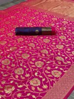 Rashmika Beautiful Art Silk Jacquard Border Saree With Unstitched Blouse For Women Wedding Wear Party and running use also( Include 5.5m Saree and 0.80m Blouse ) Baric jacquard patta. Paired with a matching unstitched blouse piece with similar weaved floral Silk. The length of the blouse is 0.80 meters. Beautiful rich pallu and jacquard work on all over the saree.
